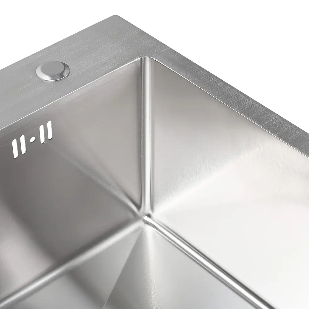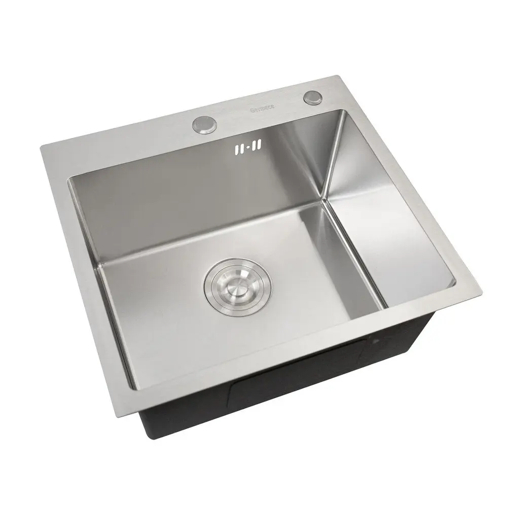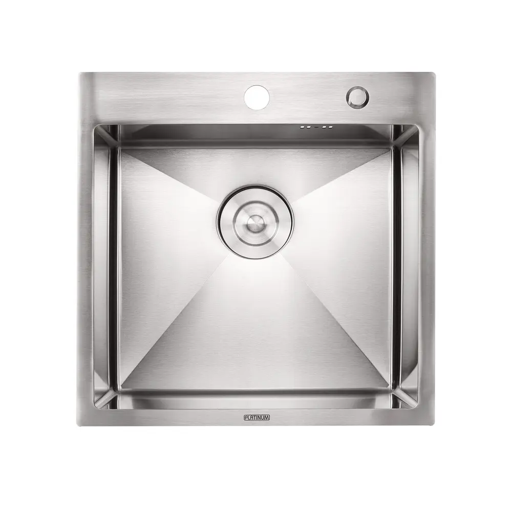 Фактура поверхности: матовая Размер чаши, мм: 450*400 Бренд: PLATINUM Материал ++: Нержавеющая сталь с PVD покрытием Шт. в коробке: 3 шт Ширина мойки, мм: 500 Глубина мойки, мм: 500 Тип установки: Универсальная (на столешницу, под столешницу, в уровень со столешницей) Толщина стали, мм: 3,0 - 1,5 Наличие чаши / рабочей поверхности (сушки): Одна основная чаша без сушки Форма мойки: квадратная Ширина шкафа для монтажа, см: 40-59 Тип мойки: врезная Комплектация к мойке: Корзина, дозатор, сифон Глубина основной чаши, мм: 220 Сифон: Евросифон (широкая горловина, 110 мм) Особенности мойки: Отверстие под смеситель и дозатор Гарантия: 5 лет Расположение чаши : Центральная Размер дополнительной чаши, мм: отсутствует Перелив: боковой Глубина дополнительной чаши, мм: Отсутствует