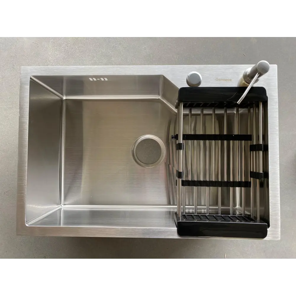 Фактура поверхности: матовая Размер чаши, мм: 600*380 Бренд: PLATINUM Материал ++: Нержавеющая сталь SUS 201 Шт. в коробке: 3 шт Ширина мойки, мм: 650 Глубина мойки, мм: 430 Тип установки: Универсальная (на столешницу, под столешницу, в уровень со столешницей) Толщина стали, мм: 3,0 - 1,5 Наличие чаши / рабочей поверхности (сушки): Одна основная чаша без сушки Форма мойки: прямоугольная Ширина шкафа для монтажа, см: 60-75 Тип мойки: врезная Комплектация к мойке: Корзина, дозатор, сифон Глубина основной чаши, мм: 220 Сифон: Евросифон (широкая горловина, 110 мм) Особенности мойки: Отверстие под смеситель и дозатор Гарантия: 5 лет Расположение чаши : Универсальная Размер дополнительной чаши, мм: отсутствует Перелив: боковой Глубина дополнительной чаши, мм: Отсутствует