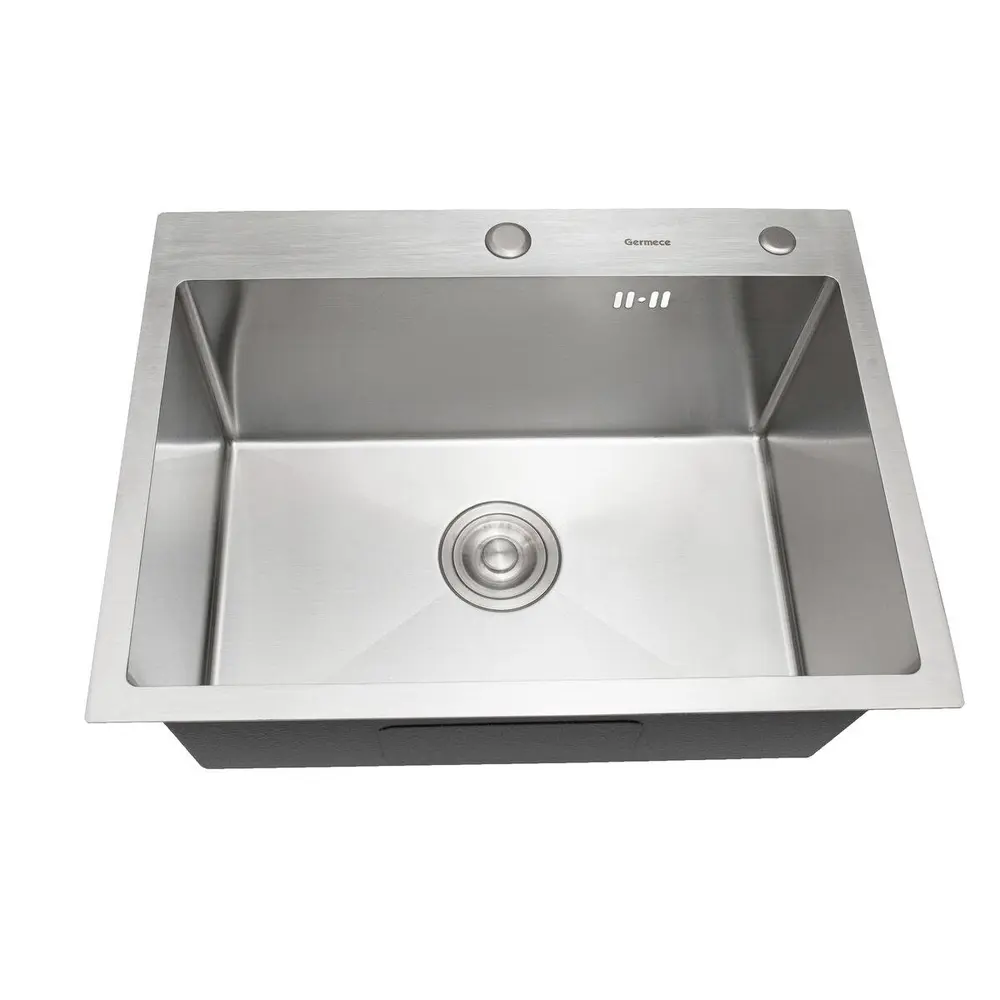 Фактура поверхности: матовая Размер чаши, мм: 550*350 Бренд: PLATINUM Материал ++: Нержавеющая сталь SUS 201 Шт. в коробке: 1 шт Ширина мойки, мм: 600 Глубина мойки, мм: 450 Тип установки: Универсальная (на столешницу, под столешницу, в уровень со столешницей) Толщина стали, мм: 3,0 - 1,2 Наличие чаши / рабочей поверхности (сушки): Одна основная чаша без сушки Форма мойки: прямоугольная Ширина шкафа для монтажа, см: 60-75 Тип мойки: врезная Комплектация к мойке: сифон Глубина основной чаши, мм: 230 Сифон: Евросифон (широкая горловина, 110 мм) Особенности мойки: Отверстие под смеситель и дозатор Гарантия: 5 лет Расположение чаши : Центральная Размер дополнительной чаши, мм: отсутствует Перелив: боковой Глубина дополнительной чаши, мм: Отсутствует