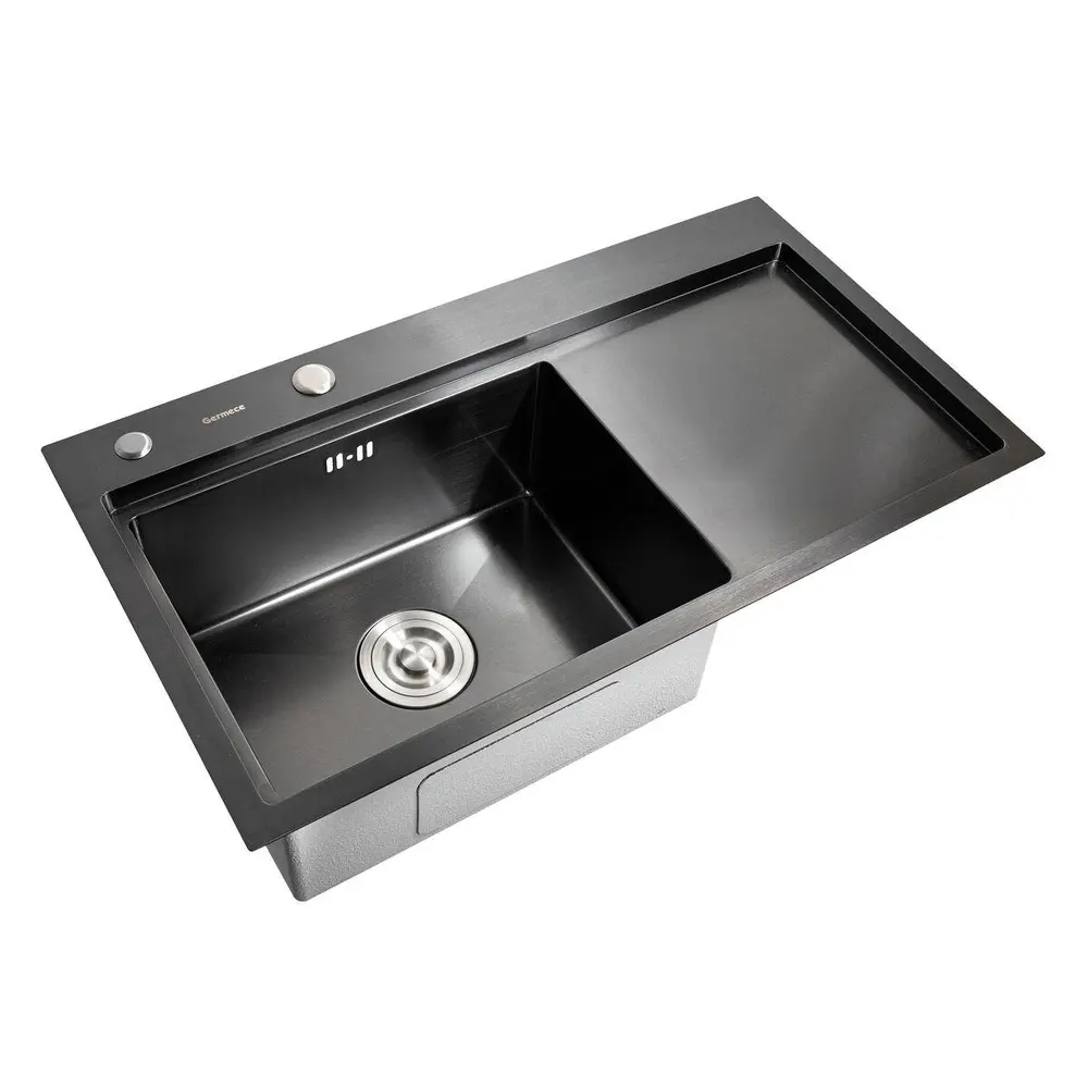 Фактура поверхности: матовая Размер чаши, мм: 415*300 Бренд: PLATINUM Материал ++: Нержавеющая сталь с PVD покрытием Шт. в коробке: 3 шт Ширина мойки, мм: 780 Глубина мойки, мм: 430 Тип установки: Универсальная (на столешницу, под столешницу, в уровень со столешницей) Толщина стали, мм: 3,0 - 1,5 Наличие чаши / рабочей поверхности (сушки): Одна основная чаша с сушкой Форма мойки: прямоугольная Ширина шкафа для монтажа, см: 76-90 Тип мойки: врезная Комплектация к мойке: Корзина, дозатор, сифон Глубина основной чаши, мм: 220 Сифон: Евросифон (широкая горловина, 110 мм) Особенности мойки: Отверстие под смеситель и дозатор Гарантия: 5 лет Расположение чаши : чаша слева Размер дополнительной чаши, мм: отсутствует Перелив: боковой Глубина дополнительной чаши, мм: Отсутствует