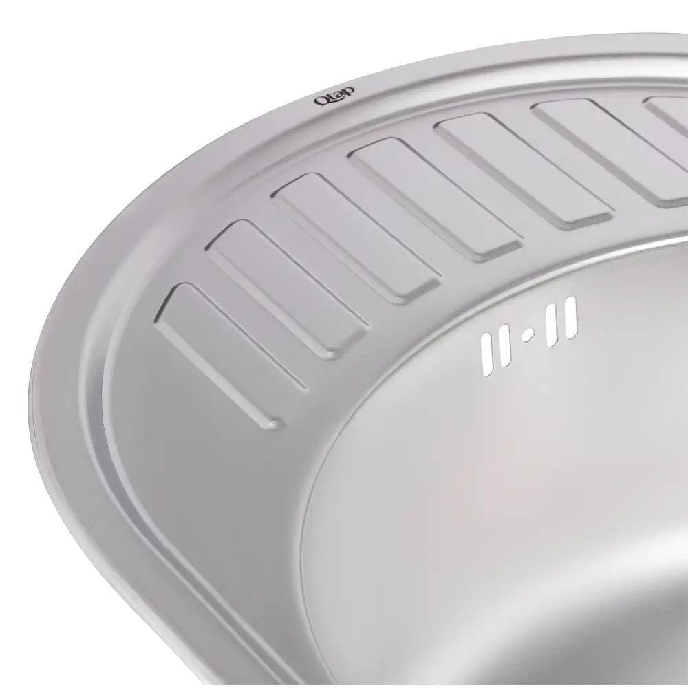 Кухонная мойка Qtap 5745 0,8 мм Satin изготовлена из высококачественной нержавеющей стали пищевой марки, поэтому изделие прослужит долгие годы. Так же стоит отметить исключительный дизайн который украсит любую кухню. Отличное качество и дизайн мойки позволят удовлетворить самые высокие требования и создать уют в вашем доме! Мойка выполнена из рабочей круглой чашей, крылом для сушки посуды и разморозки продуктов. Монтируется врезным способом в отверстие в столешнице. Поверхность - матовая, гладкая.