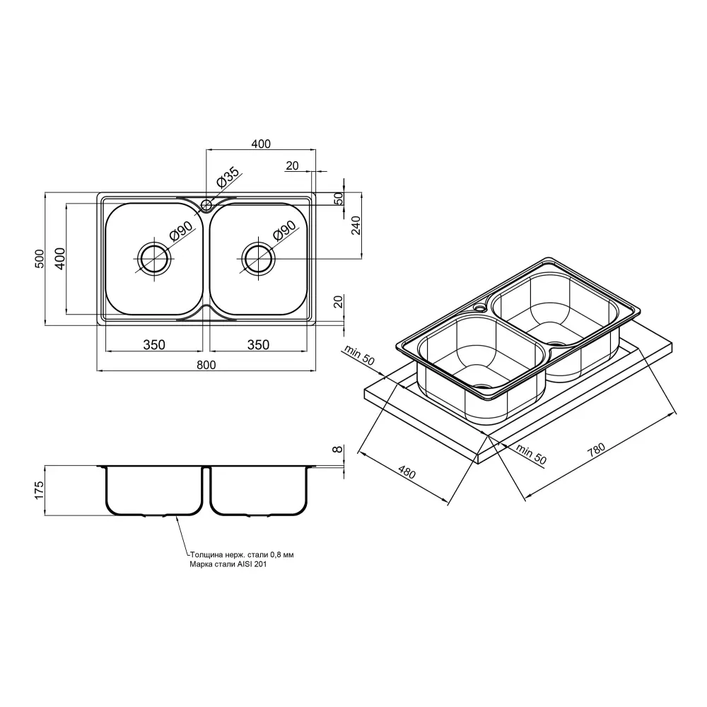 Кухонная мойка с двумя чашами Lidz 7948 0,8 мм Decor (LIDZ7948DEC08) изготовлена из нержавеющей стали пищевой марки, поэтому изделие прослужит долгие годы. Также стоит отметить исключительный дизайн, который украсит любую кухню. Отличное качество и дизайн мойки удовлетворят найвибагливи пожелания! Мойка выполнена с двумя чашами с отверстием под смеситель, монтируется врезным способом в отверстие в столешнице.