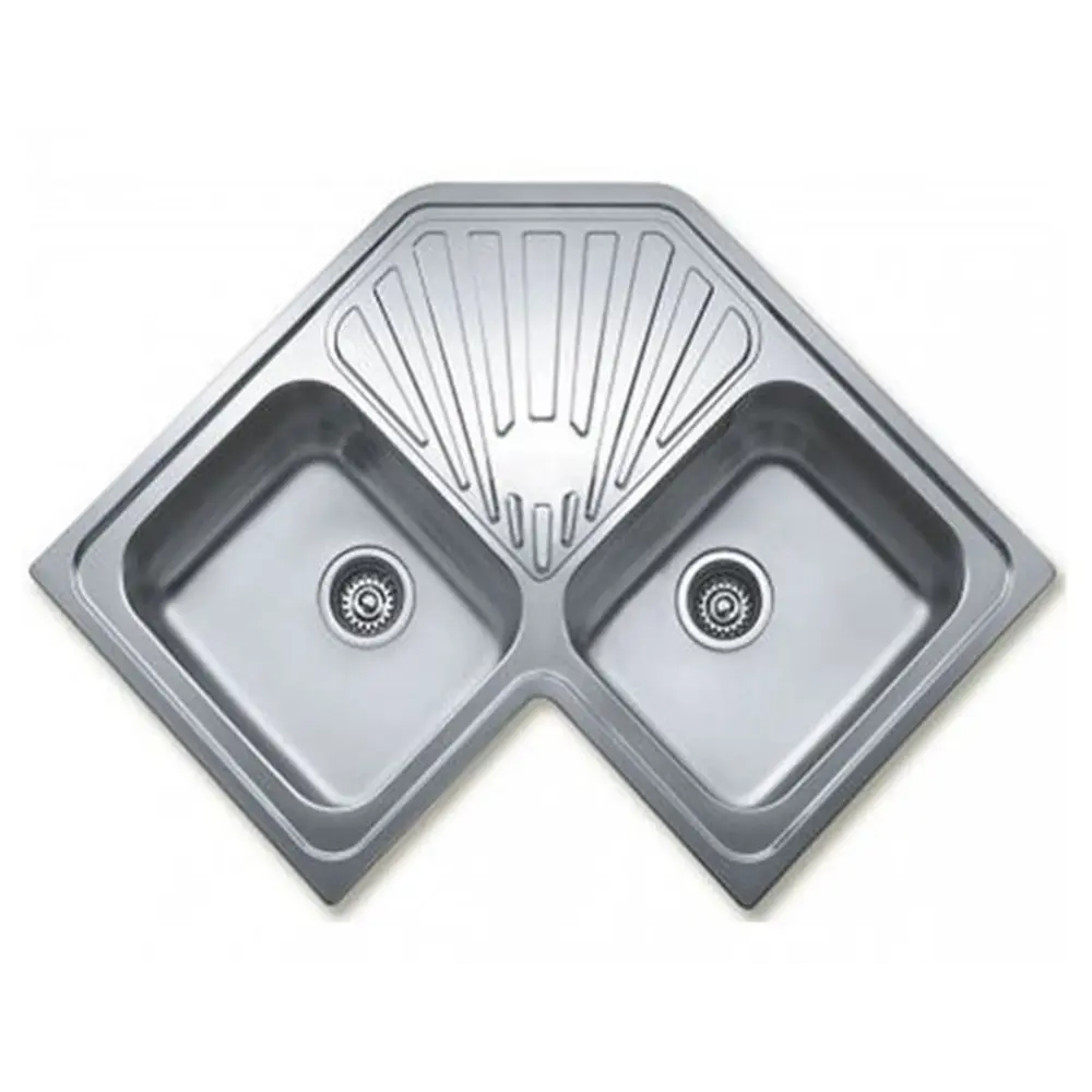 Кутова мийка для кухні врізна Teka CLASSIC ANGULAR 2B (10118005) нержавіюча сталь з двома чашами і крилом між чашами.