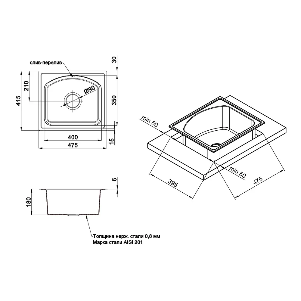 Габарити основної чаші, мм