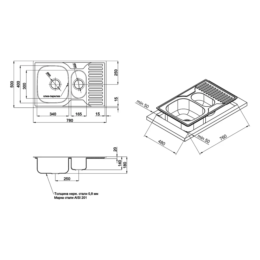 Кухонна мийка ULA 7301 ZS Micro Decor 08 виготовлена з високоякісної нержавіючої сталі харчової марки, тому прослужить довгі роки. Вона сертифікована, легко переносить вплив окропу та пари температурою до 140°С. Мікроструктура стійка до впливу агресивних мийних засобів, має антикорозійні властивості, легко миється. Виріб виконаний з основною чашею, додатковою для розморожування продуктів та ребристим крилом для сушіння посуду. Монтується урізним способом в отвір в стільниці.