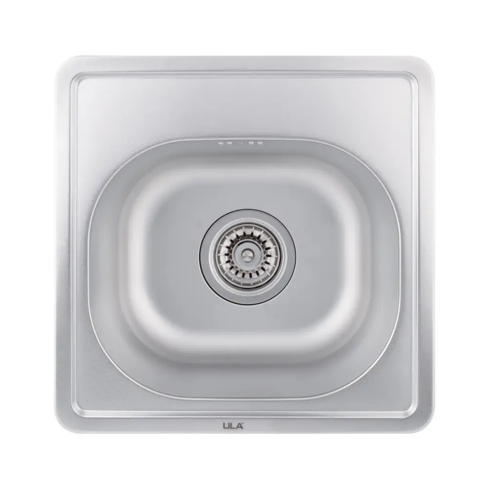 Кухонна мийка ULA 7706 ZS Satin 08 виготовлена з високоякісної нержавіючої сталі харчової марки, тому прослужить довгі роки. Вона сертифікована, легко переносить вплив окропу та пари температурою до 140°С. Матова поверхня гладка, швидко миється та завжди має привабливий вигляд. Виріб виконано з основною овальною чашею, переливом та поверхнею з трохи піднятими бортами. На передній борт нанесено фірмовий логотип виробника. Монтується урізним способом в отвір в стільниці.
