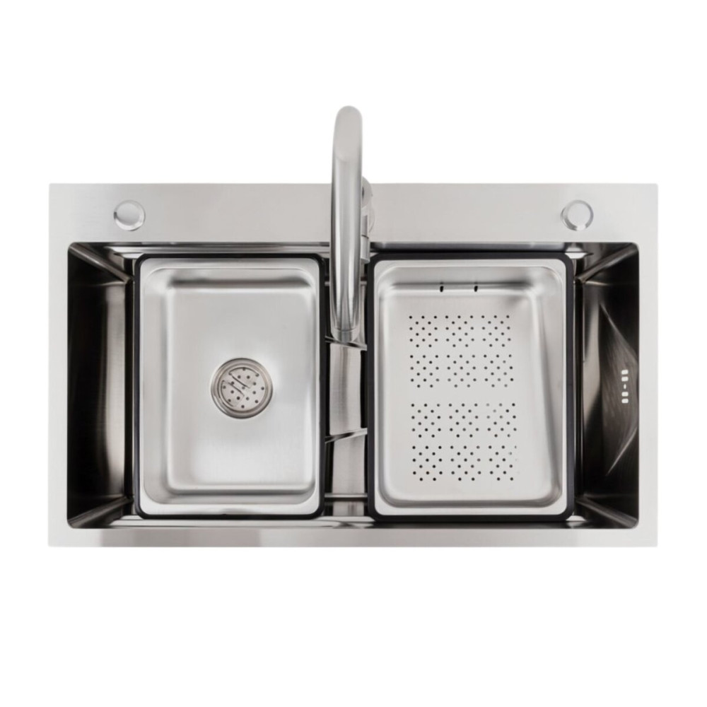Изготовленная из высококачественной нержавеющей стали SUS 201, эта мойка отличается непревзойденной прочностью и устойчивостью к коррозии. Толщина стенок 3,0 мм обеспечивает надежность, а толщина 0,8 мм — оптимальный баланс веса и долговечности. Просторная чаша размером 700х360х205 мм позволяет легко мыть большие кастрюли и противни, а уникальная конструкция Workstation с интегрированными бортиками дает возможность использовать аксессуары прямо над мойкой.