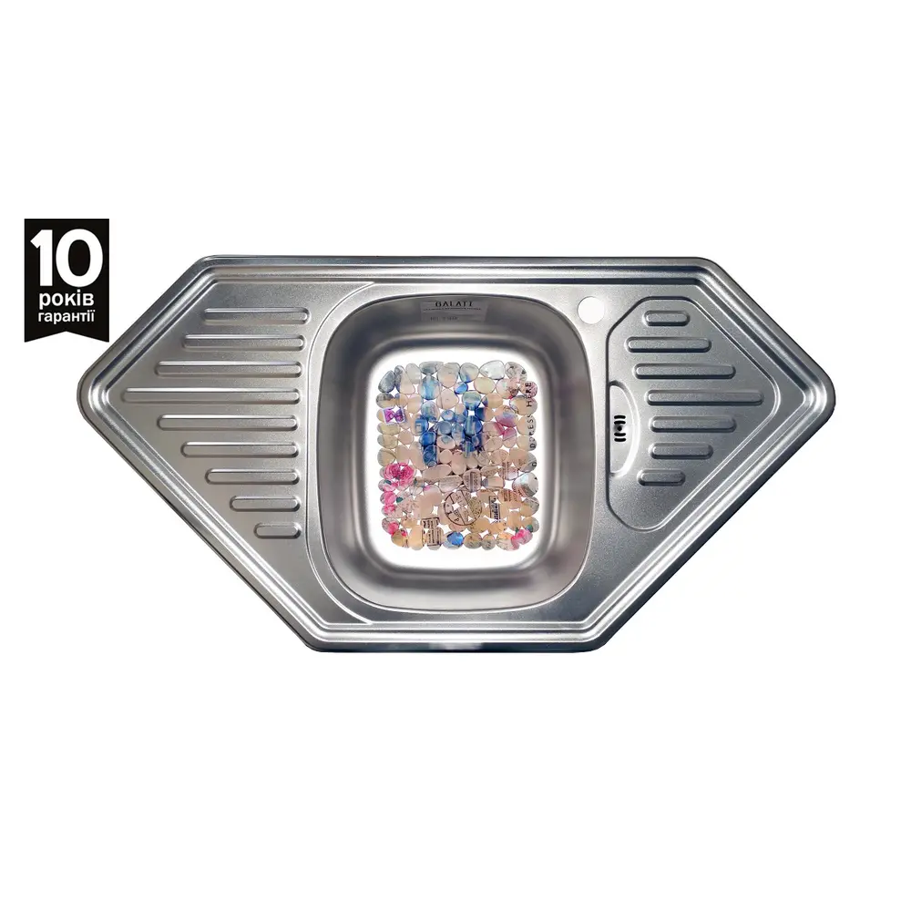 Комплекс: кухонна мийка, арматура злив, гофритаційна трубка, кріплення для встановлення та ущільнення.