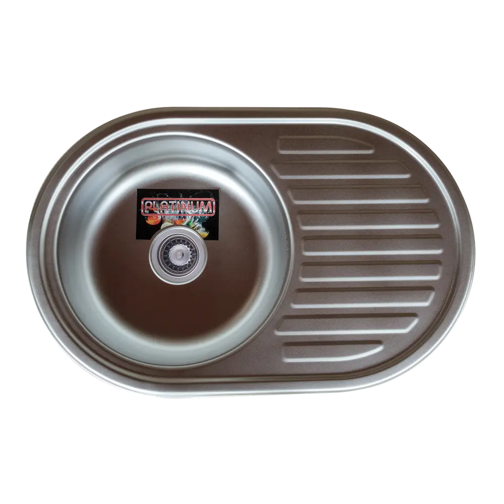 Фактура поверхности: матовая Размер чаши, мм: 400*400 Бренд: PLATINUM Материал ++: Нержавеющая сталь SUS 201 Шт. в коробке: 12 шт Ширина мойки, мм: 770 Глубина мойки, мм: 500 Тип установки: на столешницу Толщина стали, мм: 0,6 Наличие чаши / рабочей поверхности (сушки): Одна основная чаша с сушкой Форма мойки: овальная Ширина шкафа для монтажа, см: 76-90 Тип мойки: врезная Комплектация к мойке: сифон крепления Глубина основной чаши, мм: 170 Сифон: Евросифон (широкая горловина, 110 мм) Особенности мойки: Без дополнительных отверстий Гарантия: 60 дней Расположение чаши : Универсальная Размер дополнительной чаши, мм: отсутствует Перелив: боковой Глубина дополнительной чаши, мм: Отсутствует