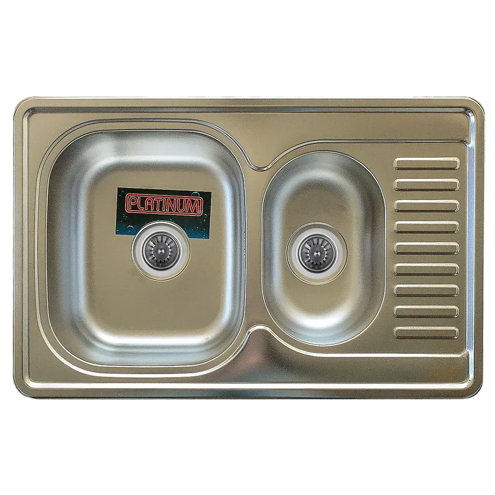 Фактура поверхности: рифленая Размер чаши, мм: 390*330 Бренд: PLATINUM Материал ++: Нержавеющая сталь SUS 201 Шт. в коробке: 5 шт Ширина мойки, мм: 780 Глубина мойки, мм: 500 Тип установки: на столешницу Толщина стали, мм: 0,8 Наличие чаши / рабочей поверхности (сушки): Одна основная одна дополнительная с сушкой Форма мойки: прямоугольная Ширина шкафа для монтажа, см: 76-90 Тип мойки: врезная Комплектация к мойке: сифон крепления Глубина основной чаши, мм: 180 Сифон: Евросифон (широкая горловина, 110 мм) Особенности мойки: Без дополнительных отверстий Гарантия: 60 дней Расположение чаши : Универсальная Размер дополнительной чаши, мм: 320 * 200 Перелив: боковой Глубина дополнительной чаши, мм: 120