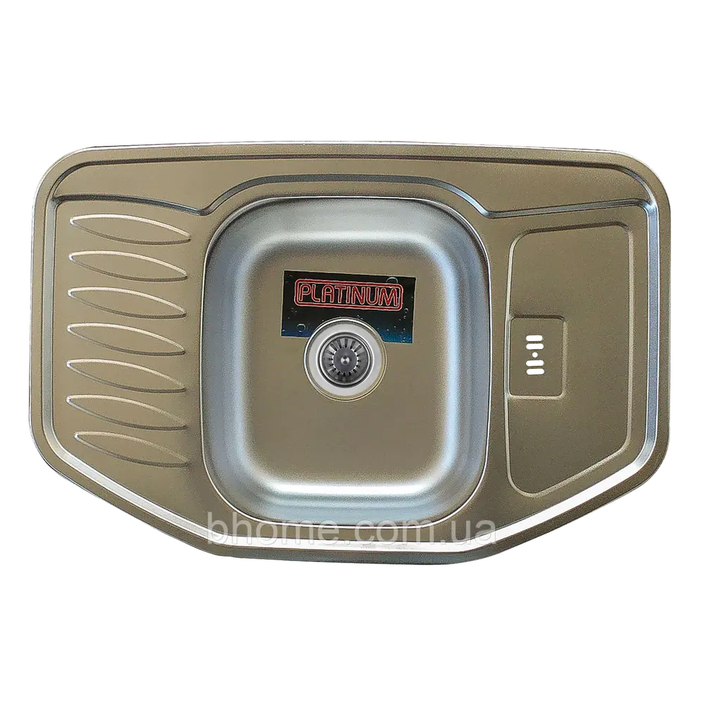 Фактура поверхні: рифлена Розмір чаші, мм: 400 * 350 Бренд: PLATINUM Матеріал ++: Нержавіюча сталь SUS 201 шт. в коробці: 10 шт Ширина мийки, мм: 780 Глибина мийки, мм: 510 Тип установки: на стільницю Товщина стали, мм: 0,8 Наявність чаші / робочої поверхні (сушіння): Одна основна чаша з сушінням Форма мийки: трапецієвидна Ширина шафи для монтажу, см: 76-90 Тип мийки: врізна Комплектація до мийки: сифон кріплення Глибина основної чаші, мм: 180 сифон: Евросіфон (широка горловина, 110 мм) Особливості мийки: Без додаткових отворів Гарантія: 60 днів Розташування чаші: Центральна Розмір додаткової чаші, мм: відсутня Перелив: верхній Глибина додаткової чаші, мм: відсутній