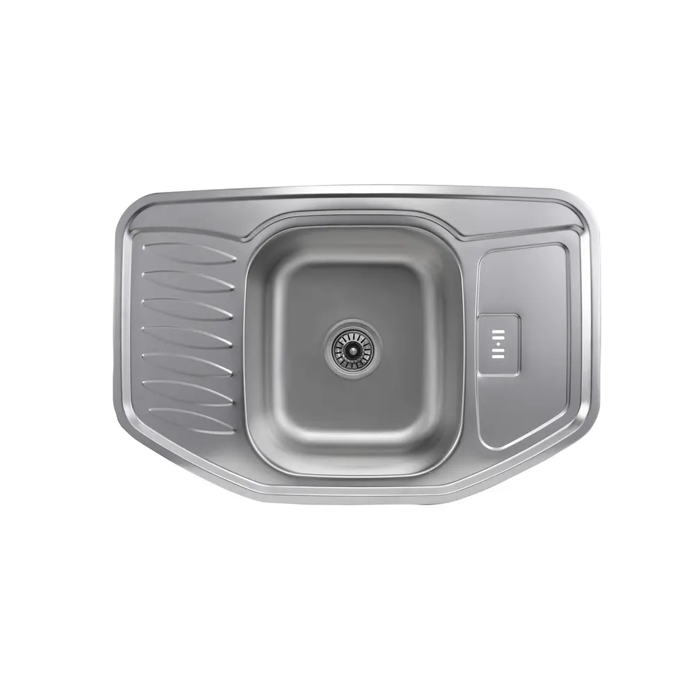 Фактура поверхности: матовая Размер чаши, мм: 400*350 Бренд: PLATINUM Материал ++: Нержавеющая сталь SUS 201 Шт. в коробке: 10 шт Ширина мойки, мм: 780 Глубина мойки, мм: 510 Тип установки: на столешницу Толщина стали, мм: 0,8 Наличие чаши / рабочей поверхности (сушки): Одна основная чаша с сушкой Форма мойки: трапециевидная Ширина шкафа для монтажа, см: 76-90 Тип мойки: врезная Комплектация к мойке: сифон крепления Глубина основной чаши, мм: 180 Сифон: Евросифон (широкая горловина, 110 мм) Особенности мойки: Без дополнительных отверстий Гарантия: 60 дней Расположение чаши : Центральная Размер дополнительной чаши, мм: отсутствует Перелив: верхний Глубина дополнительной чаши, мм: Отсутствует
