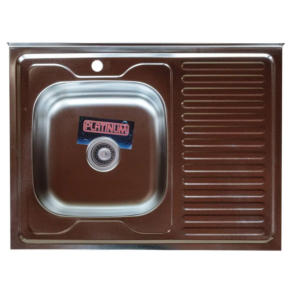 Фактура поверхности: рифленая Размер чаши, мм: 400*400 Бренд: PLATINUM Материал ++: Нержавеющая сталь SUS 201 Шт. в коробке: 10 шт Ширина мойки, мм: 800 Глубина мойки, мм: 600 Тип установки: на тумбу Толщина стали, мм: 0,7 Наличие чаши / рабочей поверхности (сушки): Одна основная чаша с сушкой Форма мойки: прямоугольная Ширина шкафа для монтажа, см: 76-90 Тип мойки: накладная Комплектация к мойке: сифон Глубина основной чаши, мм: 160 Сифон: Евросифон (широкая горловина, 110 мм) Особенности мойки: Отверстие под смеситель Гарантия: 60 дней Расположение чаши : чаша дело Размер дополнительной чаши, мм: отсутствует Перелив: боковой Глубина дополнительной чаши, мм: Отсутствует