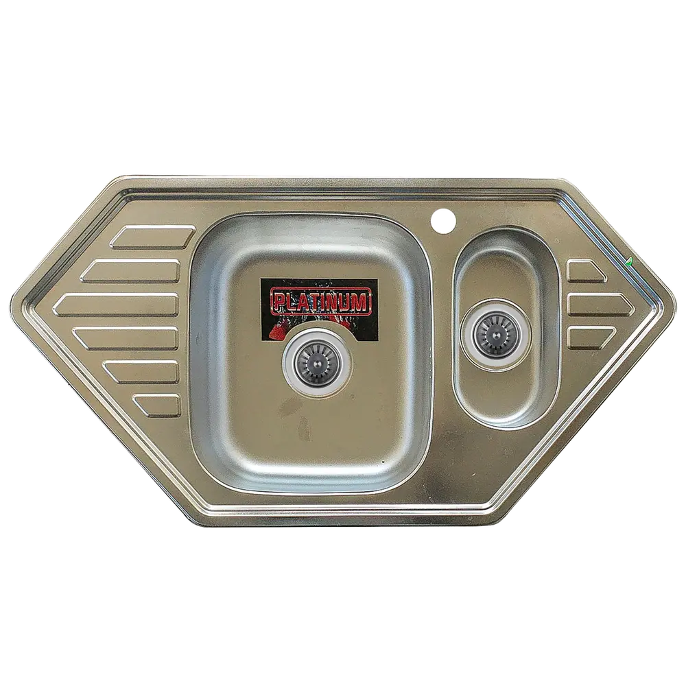 Фактура поверхности: матовая Размер чаши, мм: 395*350 Бренд: PLATINUM Материал ++: Нержавеющая сталь SUS 201 Шт. в коробке: 5 шт Ширина мойки, мм: 950 Глубина мойки, мм: 500 Тип установки: на столешницу Толщина стали, мм: 0,8 Наличие чаши / рабочей поверхности (сушки): Одна основная одна дополнительная с сушкой Форма мойки: трапециевидная Ширина шкафа для монтажа, см: более 90 Тип мойки: врезная Комплектация к мойке: сифон Глубина основной чаши, мм: 180 Сифон: Евросифон (широкая горловина, 110 мм) Особенности мойки: Отверстие под смеситель Гарантия: 60 дней Расположение чаши : Центральная Размер дополнительной чаши, мм: 300 * 165 Перелив: боковой Глубина дополнительной чаши, мм: 120