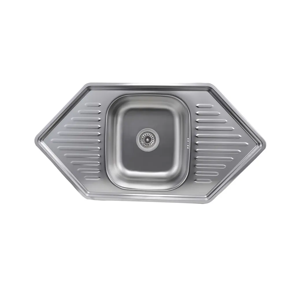 Фактура поверхности: матовая Размер чаши, мм: 395*350 Бренд: PLATINUM Материал ++: Нержавеющая сталь SUS 201 Шт. в коробке: 5 шт Ширина мойки, мм: 950 Глубина мойки, мм: 500 Тип установки: на столешницу Толщина стали, мм: 0,8 Наличие чаши / рабочей поверхности (сушки): Одна основная чаша с сушкой Форма мойки: трапециевидная Ширина шкафа для монтажа, см: более 90 Тип мойки: врезная Комплектация к мойке: сифон Глубина основной чаши, мм: 180 Сифон: Евросифон (широкая горловина, 110 мм) Особенности мойки: Без дополнительных отверстий Гарантия: 60 дней Расположение чаши : Центральная Размер дополнительной чаши, мм: отсутствует Перелив: боковой Глубина дополнительной чаши, мм: Отсутствует