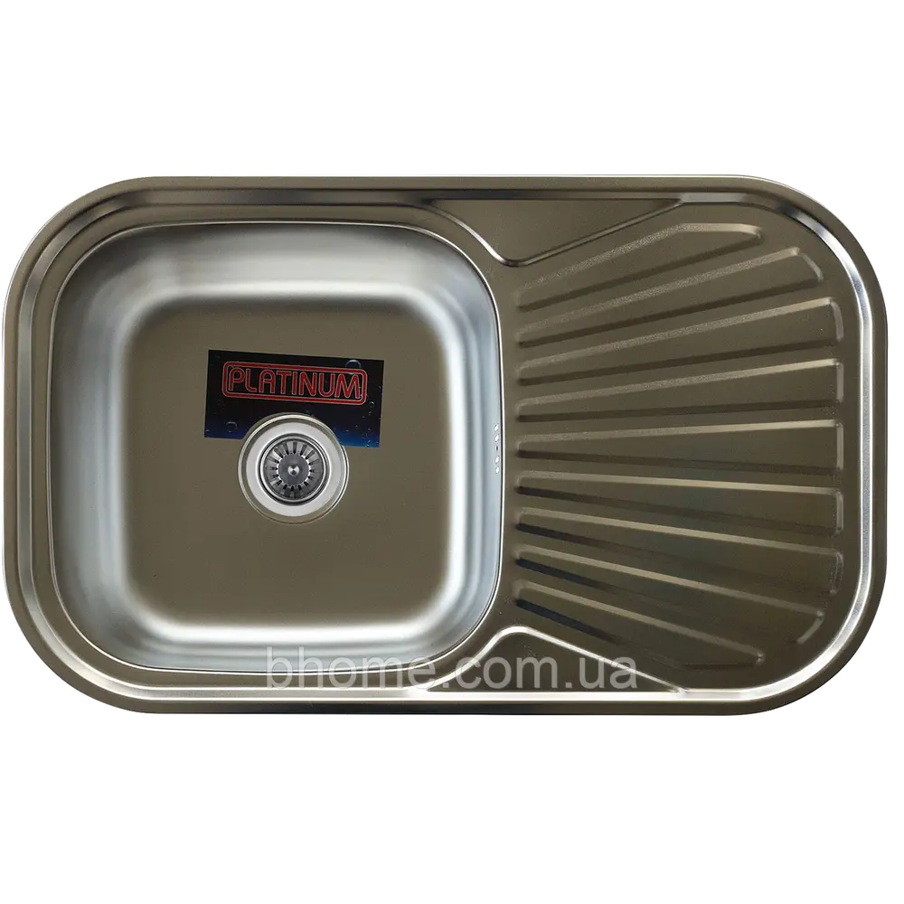 Фактура поверхні: рифлена Розмір чаші, мм: 400 * 400 Бренд: "PLATINUM" Матеріал ++: Нержавіюча сталь SUS 201 шт. в коробці: 10 шт Ширина мийки, мм: 780 Глибина мийки, мм: 480 Тип установки: на стільницю Товщина стали, мм: 0,8 Наявність чаші / робочої поверхні (сушіння): Одна основна чаша з сушінням Форма мийки: овальна Ширина шафи для монтажу, см: 76-90 Тип мийки: врізна Комплектація до мийки: сифон кріплення Глибина основної чаші, мм: 180 сифон: Евросіфон (широка горловина, 110 мм) Особливості мийки: Без додаткових отворів Гарантія: 60 днів Розташування чаші: Універсальна Розмір додаткової чаші, мм: відсутня Перелив: бічний Глибина додаткової чаші, мм: відсутній