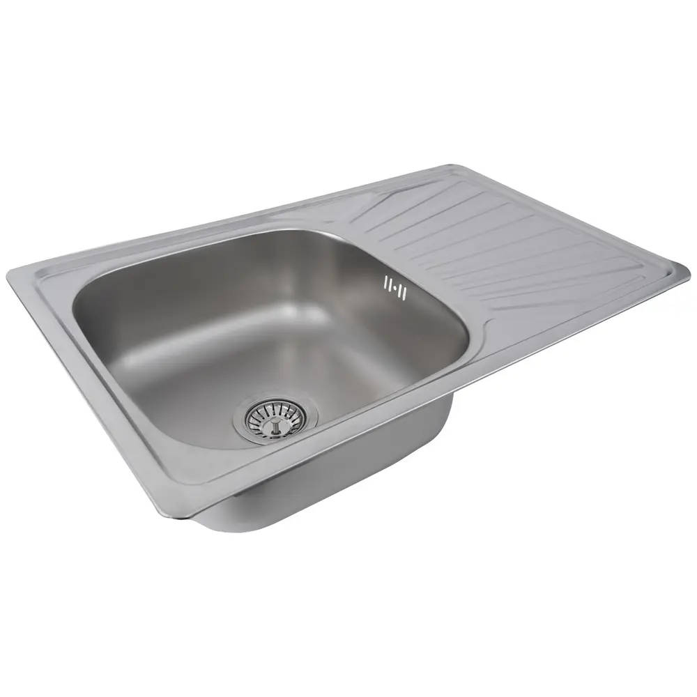 Фактура поверхности: матовая Размер чаши, мм: 390*350 Бренд: PLATINUM Материал ++: Нержавеющая сталь SUS 201 Шт. в коробке: 10 шт Ширина мойки, мм: 780 Глубина мойки, мм: 480 Тип установки: на столешницу Толщина стали, мм: 0,8 Наличие чаши / рабочей поверхности (сушки): Одна основная чаша с сушкой Форма мойки: прямоугольная Ширина шкафа для монтажа, см: 76-90 Тип мойки: врезная Комплектация к мойке: сифон крепления Глубина основной чаши, мм: 180 Сифон: Евросифон (широкая горловина, 110 мм) Особенности мойки: Без дополнительных отверстий Гарантия: 60 дней Расположение чаши : Универсальная Размер дополнительной чаши, мм: отсутствует Перелив: боковой Глубина дополнительной чаши, мм: Отсутствует