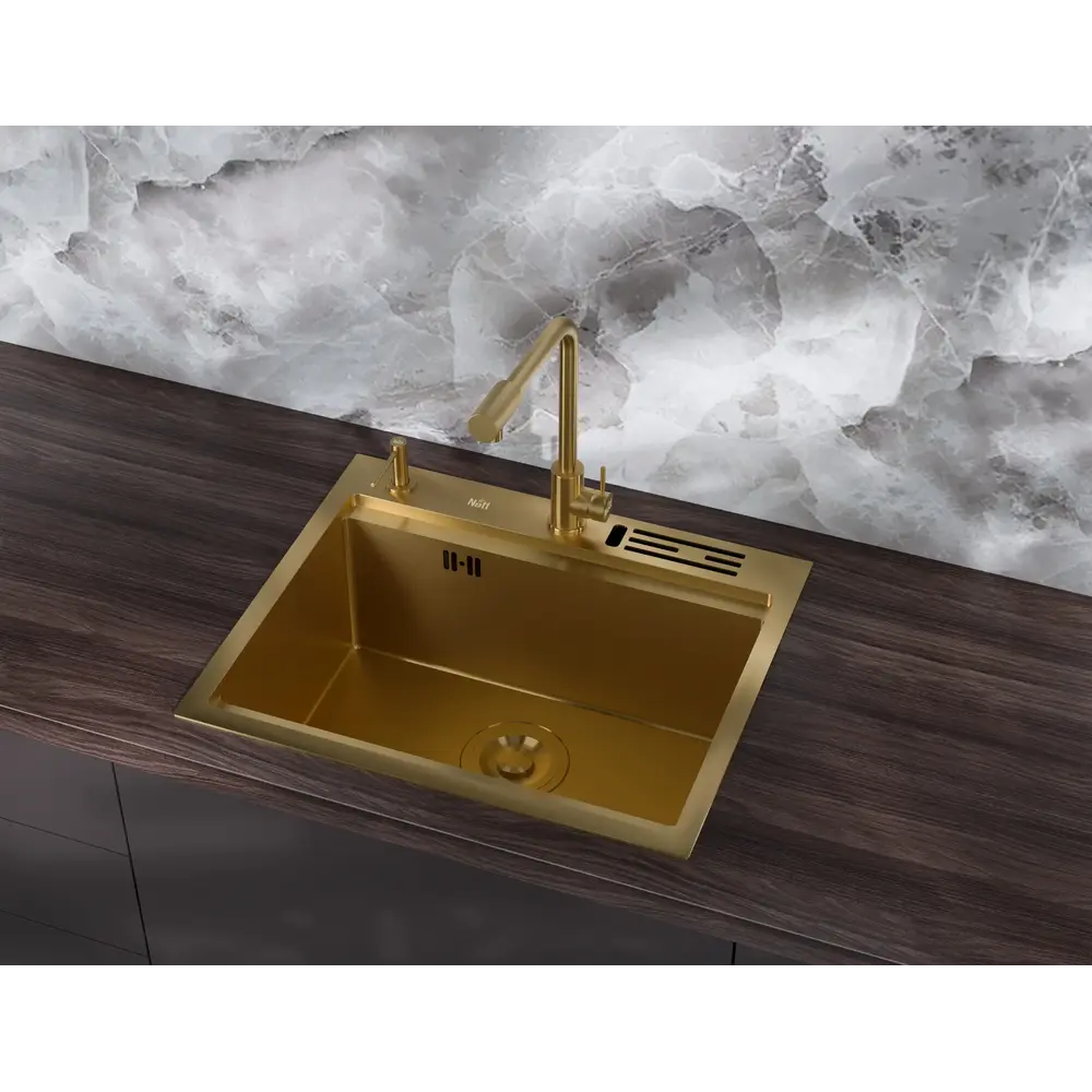 Розгляньте можливість вибору врізної мийки із золотим Nano-покриттям, яке продовжить захищати метал навіть при випадкових пошкодженнях.