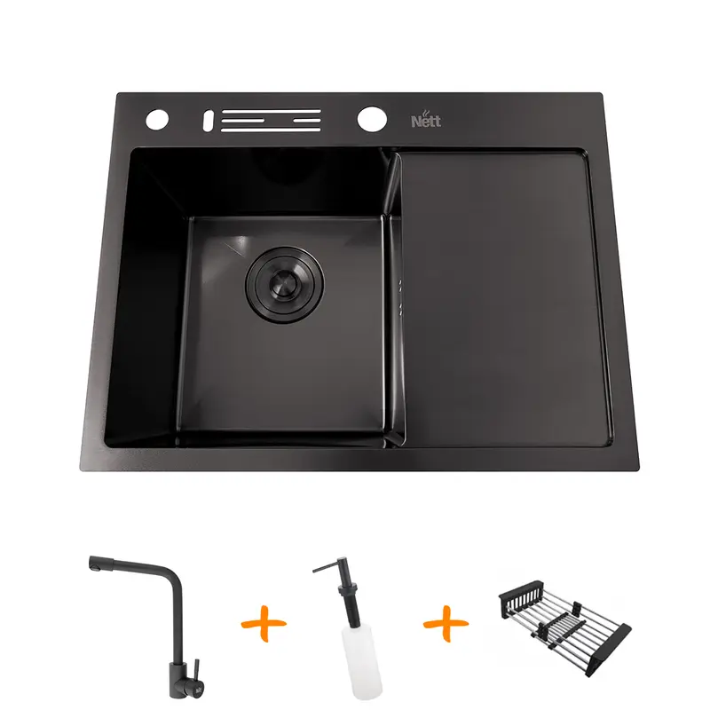 Кухонна мийка 50*45 PVD чорна VALESO Handmade (сифон круглий, 3,0/0,8)