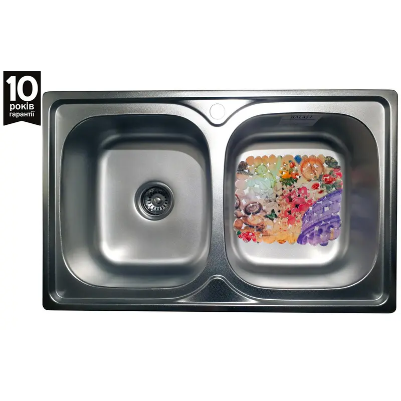 Накладна мийка на тумбу стандартного розміру 80х60 сантиметри, нам стала ідеально, докупляли кріплення. Встановлення зайняло 10 хвилин. Мийка простора, внутрішня раковина доволі велика і велика сушка для посуду, що значно полегшує прибирання та зберігання посуду. Отвір під кран вже є, тому не треба морочитись з тим питанням. Поверхня гладка, матована, виглядає гарно, в догляді теж проста - протер і все. Є перелив який відводить воду, якщо багато набралось. Достатньо шумоізольована, щоб не дзінчати. Покуркою задоволена і звістно можу рекуомендувати.