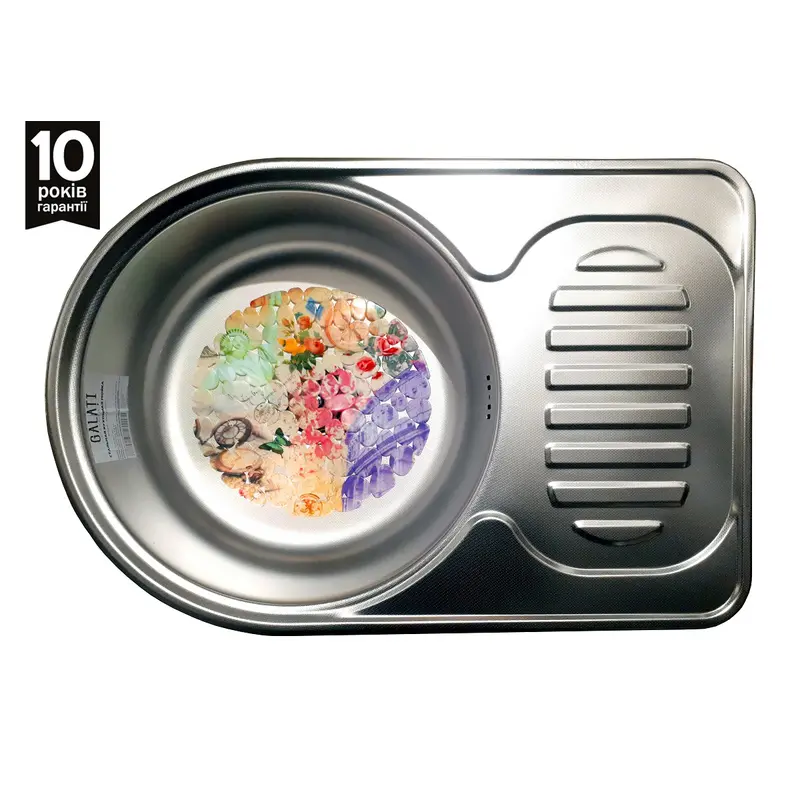 Мої найліпщі рекомендації цій мийці - простора мийка з рифленою поверхнею має чудовий вигляд. В установці все просто - поставив на тумбу - маєшь готовий комплект. Не дзінчить, доволі містка раковина і сушка. Метал відповідає заявленому.