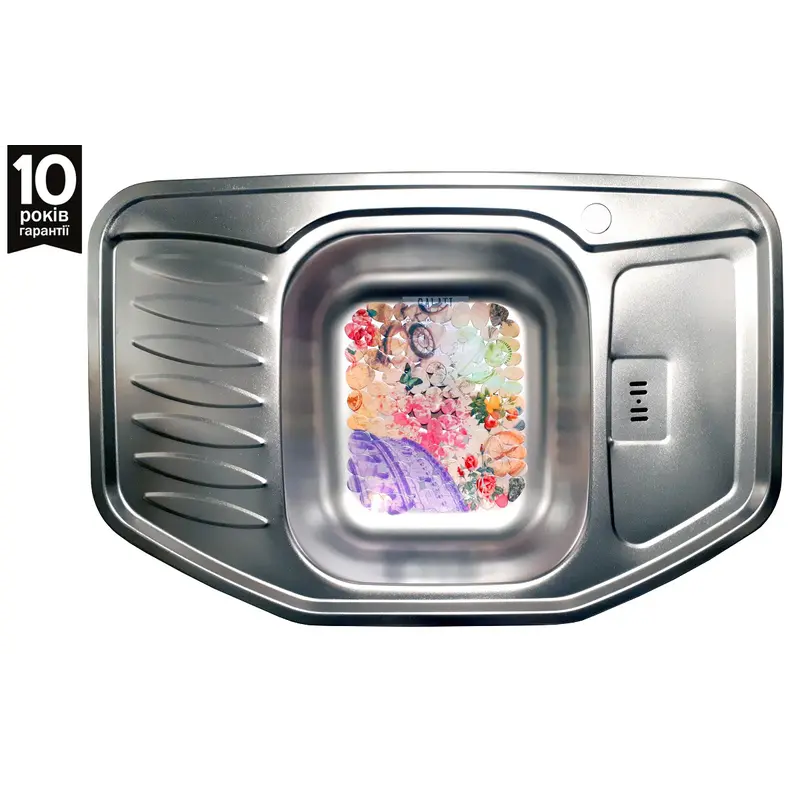 Мої найліпщі рекомендації цій мийці - простора мийка з рифленою поверхнею має чудовий вигляд. В установці все просто - поставив на тумбу - маєшь готовий комплект. Не дзінчить, доволі містка раковина і сушка. Метал відповідає заявленому.