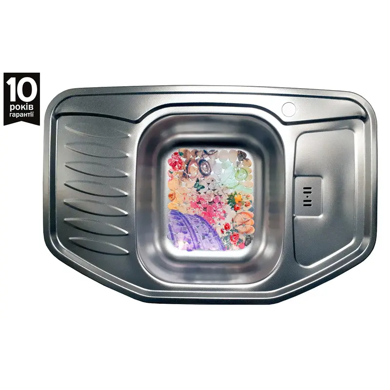Мої найліпщі рекомендації цій мийці - простора мийка з рифленою поверхнею має чудовий вигляд. В установці все просто - поставив на тумбу - маєшь готовий комплект. Не дзінчить, доволі містка раковина і сушка. Метал відповідає заявленому.