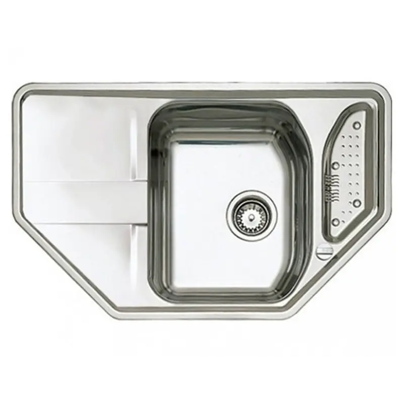 •    Трьохчашеві мийки: Ця конструкція складається з трьох чаш, що дозволяє виконувати ще більше робіт одночасно, таких як миття посуду, овочів та м'яса.