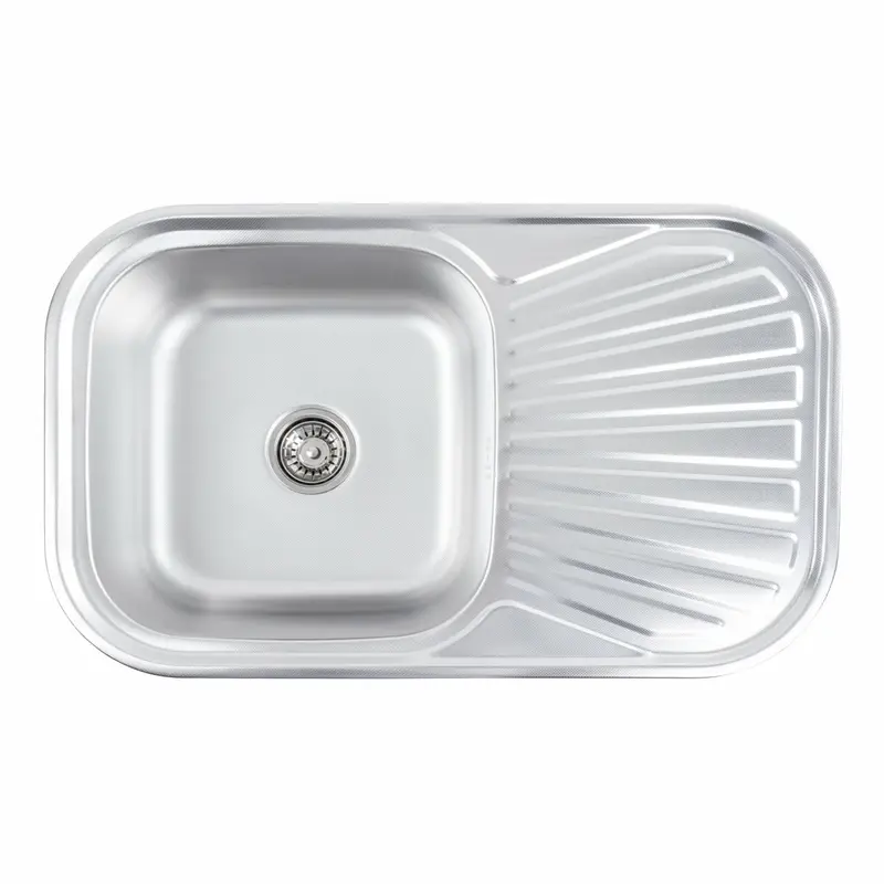 Мої найліпщі рекомендації цій мийці - простора мийка з рифленою поверхнею має чудовий вигляд. В установці все просто - поставив на тумбу - маєшь готовий комплект. Не дзінчить, доволі містка раковина і сушка. Метал відповідає заявленому.