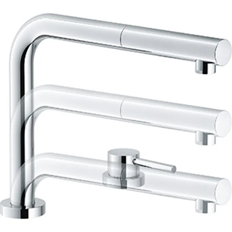 Кухонні змішувачі на 2 води (гарячу та холодну) – незамінний елемент сучасної кухні, що забезпечує комфортне користування водою. Вони дозволяють легко регулювати температуру та потік, що особливо важливо для ефективного миття посуду, овочів чи рук. Завдяки сучасному дизайну та різноманіттю матеріалів такі змішувачі гармонійно доповнюють будь-який інтер'єр кухні.