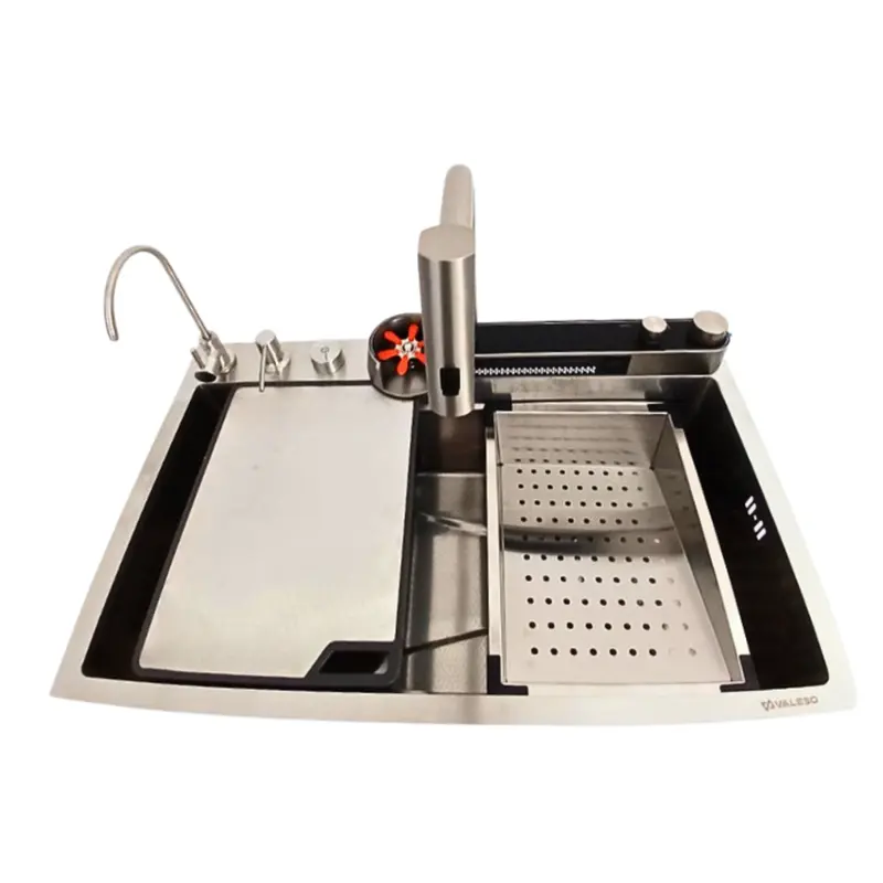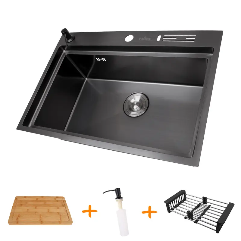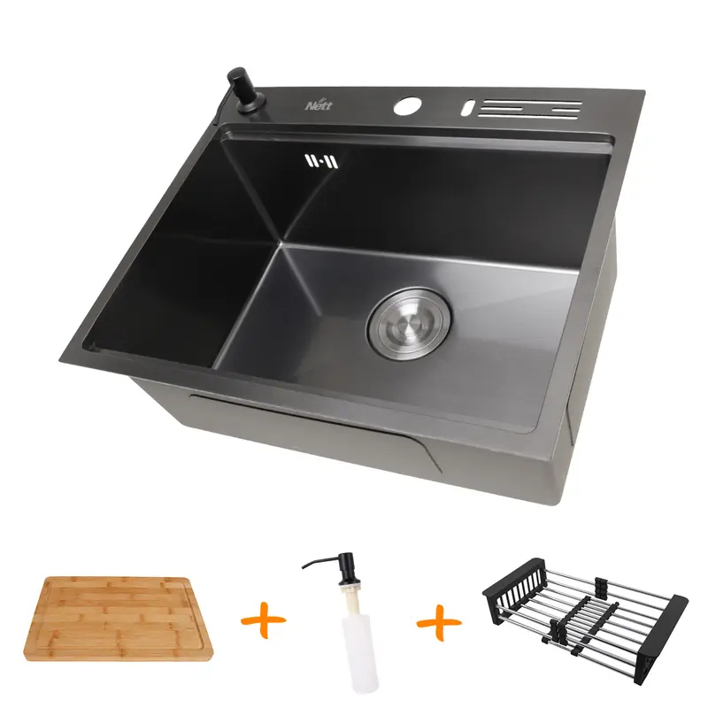 Кухонная мойка VALESO Handmade PVD 70*50 черная (сифон круглый, 3,0/0,8)
