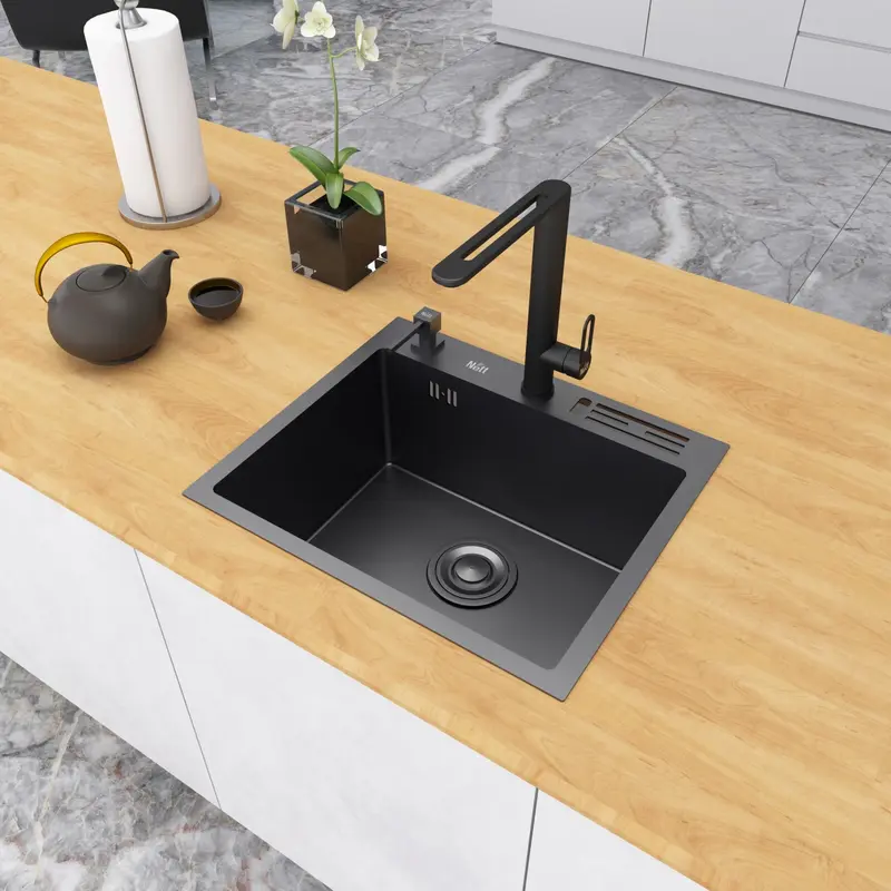 Дуже стильна мийка, виглядає дорого і сучасно на кухні. Чорне PVD-покриття гарно блищить і не залишає подряпин, навіть після активного використання. Розмір оптимальний – не займає зайвого місця, але чаша глибока, посуд зручно мити. Догляд простий – достатньо протерти вологою ганчіркою, і мийка як нова.