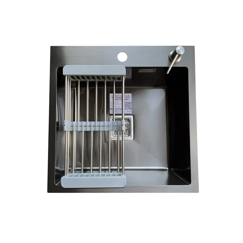 Кухонная мойка 50*45 PVD черная VALESO Handmade (сифон круглый, 3,0/0,8)