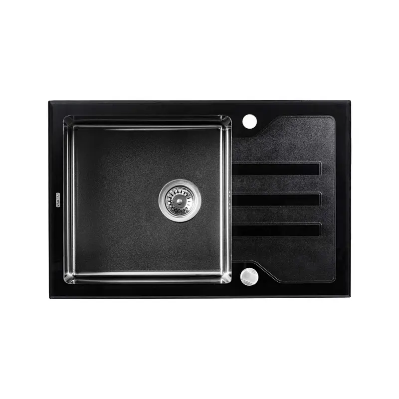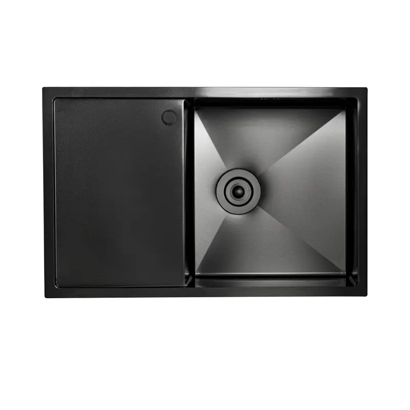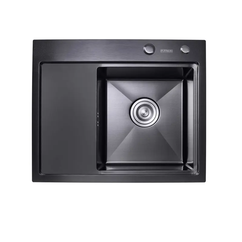 Дуже стильна мийка, виглядає дорого і сучасно на кухні. Чорне PVD-покриття гарно блищить і не залишає подряпин, навіть після активного використання. Розмір оптимальний – не займає зайвого місця, але чаша глибока, посуд зручно мити. Догляд простий – достатньо протерти вологою ганчіркою, і мийка як нова.