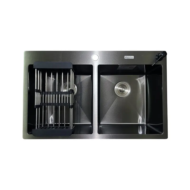 Кухонная мойка VALESO Handmade PVD 70*50 черная (сифон круглый, 3,0/0,8)