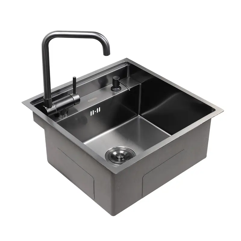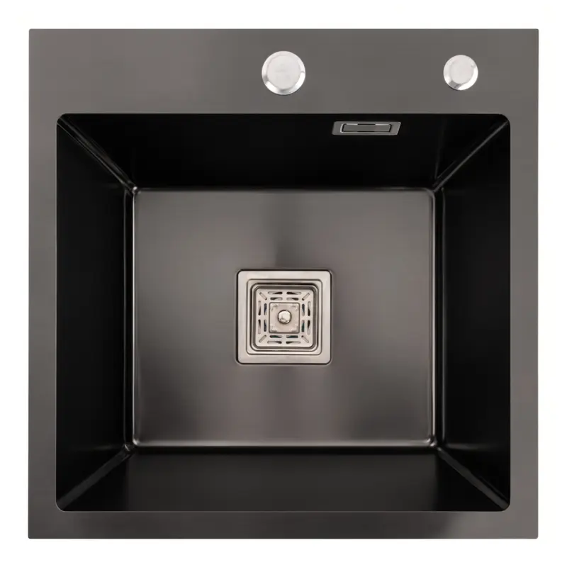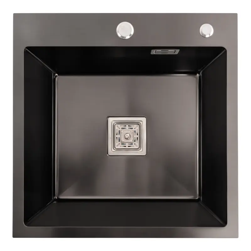 Кухонная мойка 50*45 PVD черная VALESO Handmade (сифон круглый, 3,0/0,8)