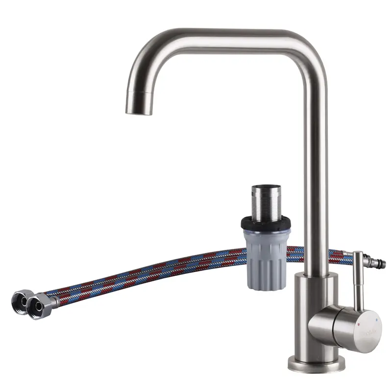 Кухонные смесители на 2 воды (горячую и холодную) – незаменимый элемент современной кухни, обеспечивающий комфортное использование воды. Они позволяют легко регулировать температуру и поток, что особенно важно для эффективного мытья посуды, овощей или рук. Благодаря современному дизайну и обилию материалов такие смесители гармонично дополняют хоть какой интерьер кухни.