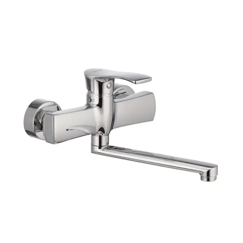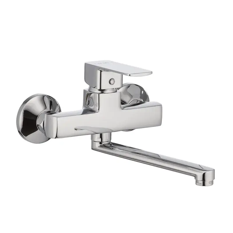 Настенные смесители могут иметь разную длину излива, что позволяет адаптировать их к любому типу кухонной мойки. Также есть модели с поворотным механизмом, облегчающим пользование двойными мойками.