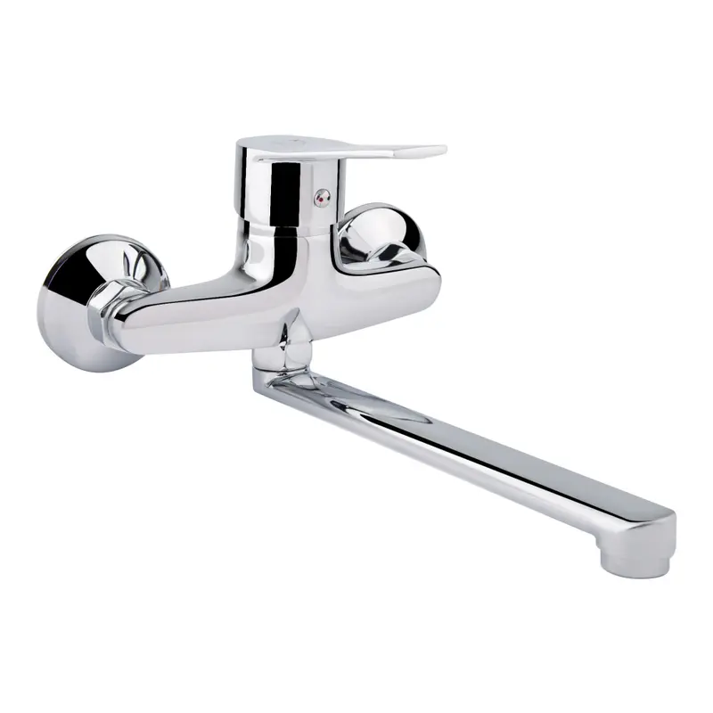 Настенные смесители могут иметь разную длину излива, что позволяет адаптировать их к любому типу кухонной мойки. Также есть модели с поворотным механизмом, облегчающим пользование двойными мойками.