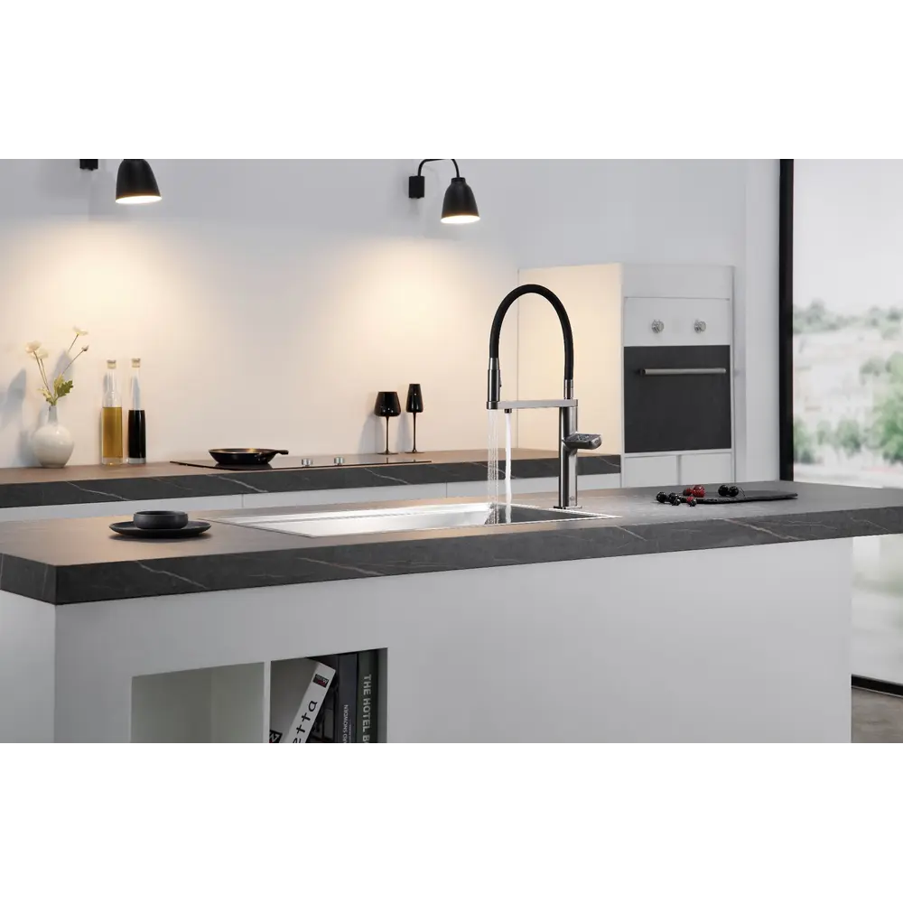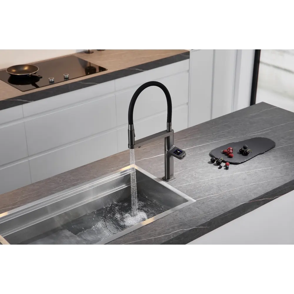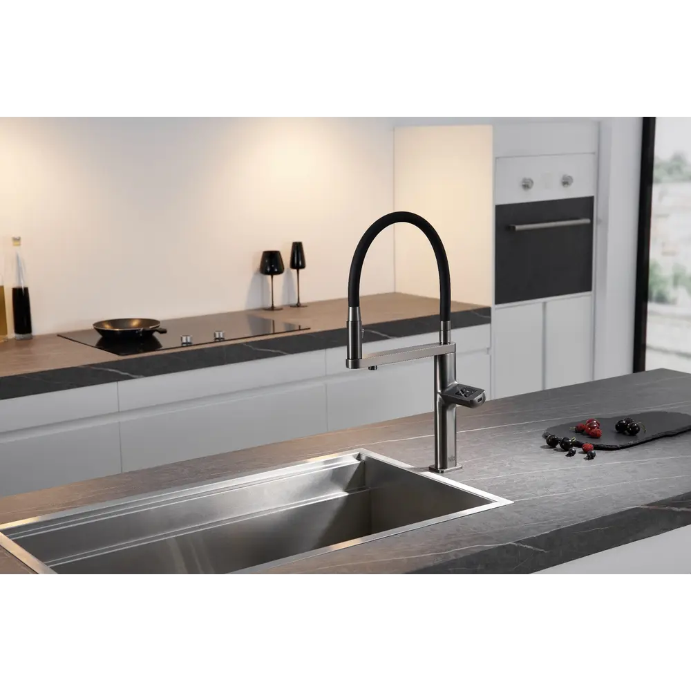 Змішувач повністю управляється сенсорним екраном, що дозволяє максимально ефективно контролювати потік та температуру води
