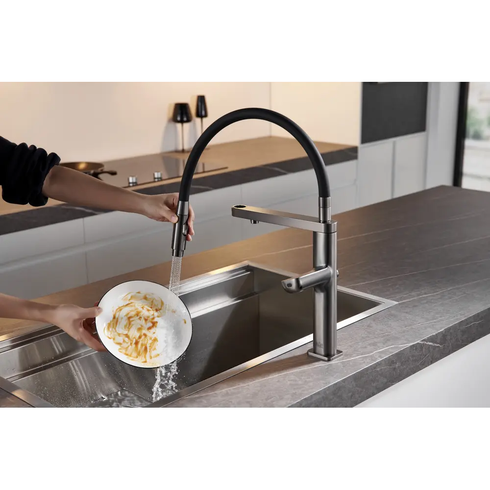 Гнучкий вилив дозволяє вам максимально просто і ефективно вимивати найвіддаленіші куточки вашої мийки