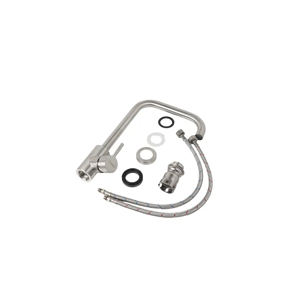 Вес (брутто): 1.450 Бренд: GERMECE Длина излива, мм: 200 Тип смесителя: Смеситель кухонный Тип выброса : поворотный Материал ++: Нержавеющая сталь SUS 304 Высота смесителя, мм: 330 Картридж: 35 Крепления: гайка Длина гибкой подводки, мм: 450 Шт. в коробке: 10 шт Шт. в упаковке: 1 шт Высота от основания до носике, мм: 250,5 Цвет излива: Нержавеющая сталь Вид смесителя: Джойстик Комплектация: Смеситель, крепления, гибкая подводка Подключение: к водопроводу Вид монтажа: Внешний Гарантия: 1 год