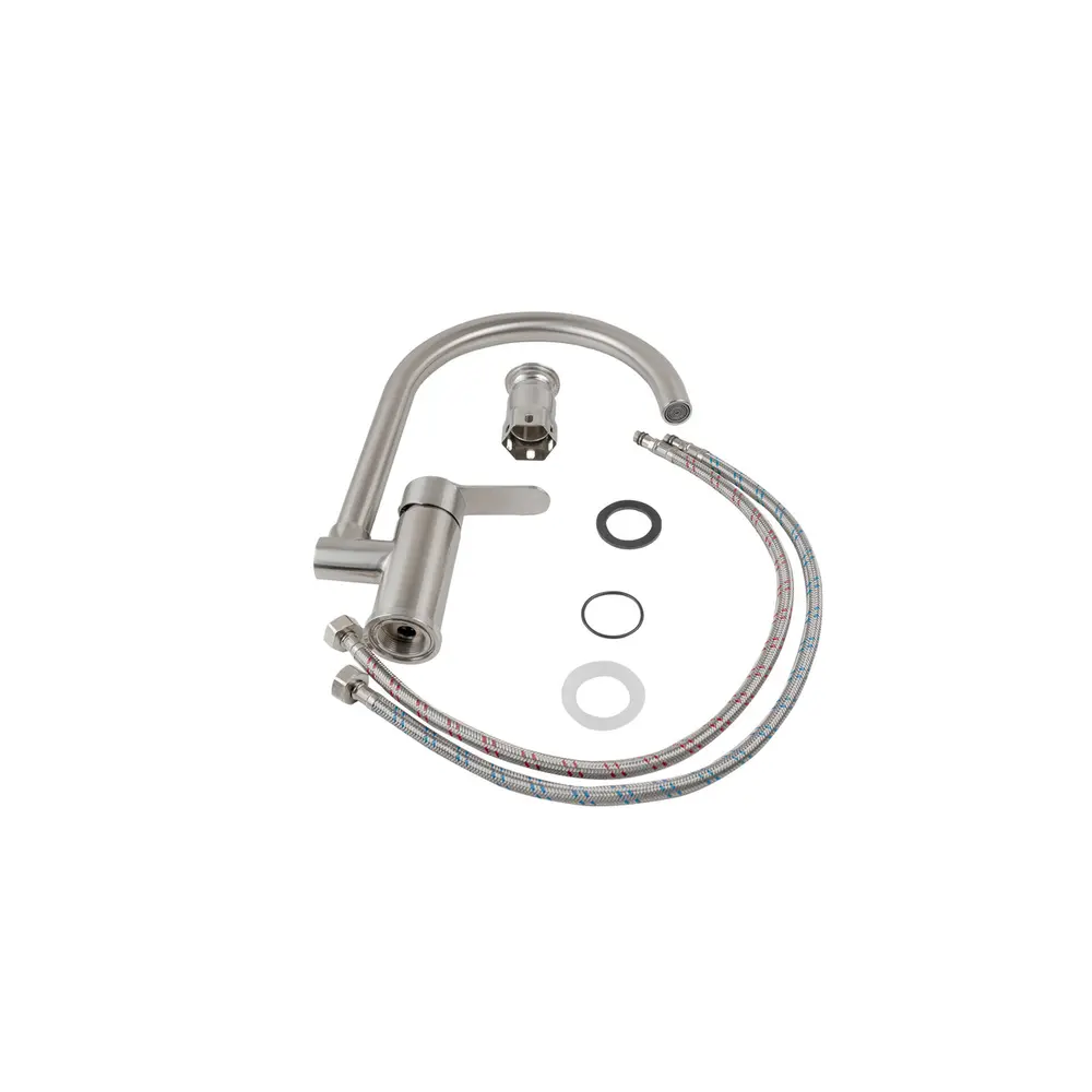 Высота, мм: 370 Вес (брутто): 1,700 Бренд: GERMECE Длина излива, мм: 220 Тип смесителя: Смеситель кухонный Тип выброса : поворотный Материал ++: Нержавеющая сталь SUS 304 Высота смесителя, мм: 370 Картридж: 35 Крепления: гайка Длина гибкой подводки, мм: 450 Шт. в коробке: 10 шт Шт. в упаковке: 1 шт Высота от основания до носике, мм: 250 Цвет излива: Нержавеющая сталь Вид смесителя: Джойстик Комплектация: Смеситель, крепления, гибкая подводка Подключение: к водопроводу Вид монтажа: Внешний Гарантия: 1 год