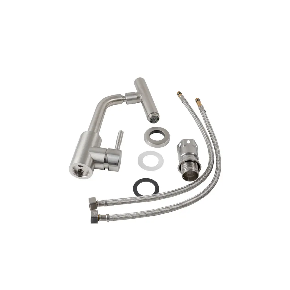 Высота, мм: 290,5 Вес (брутто): 1,600 Бренд: GERMECE Длина излива, мм: 100 Тип смесителя: Смеситель кухонный Тип выброса : поворотный Материал ++: Нержавеющая сталь SUS 304 Высота смесителя, мм: 290,5 Картридж: 35 Крепления: гайка Длина гибкой подводки, мм: 400 Шт. в коробке: 10 шт Шт. в упаковке: 1 шт Цвет излива: Нержавеющая сталь Вид смесителя: Джойстик Комплектация: Смеситель, крепления, гибкая подводка Подключение: к водопроводу Вид монтажа: Внешний Гарантия: 1 год
