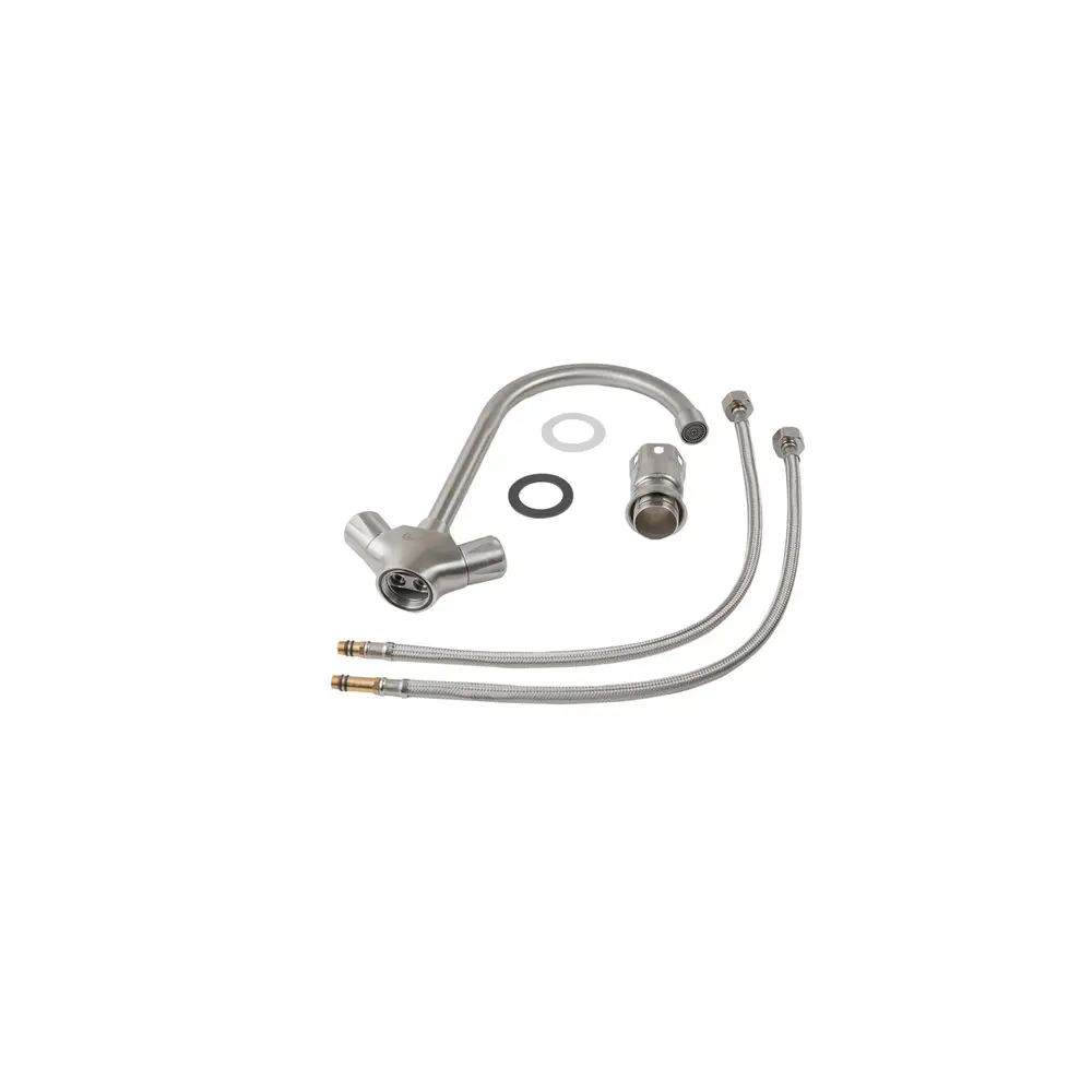 Высота, мм: 300 Вес (брутто): 1,100 Бренд: GERMECE Длина излива, мм: 160 Тип смесителя: Смеситель кухонный Тип выброса : поворотный Материал ++: Нержавеющая сталь SUS 304 Высота смесителя, мм: 290,5 Картридж: 35 Крепления: гайка Длина гибкой подводки, мм: 450 Шт. в коробке: 10 шт Шт. в упаковке: 1 шт Высота от основания до носике, мм: 210 Цвет излива: Нержавеющая сталь Вид смесителя: Двухвентильный Комплектация: Смеситель, крепления, гибкая подводка Подключение: к водопроводу Вид монтажа: Внешний Гарантия: 1 год