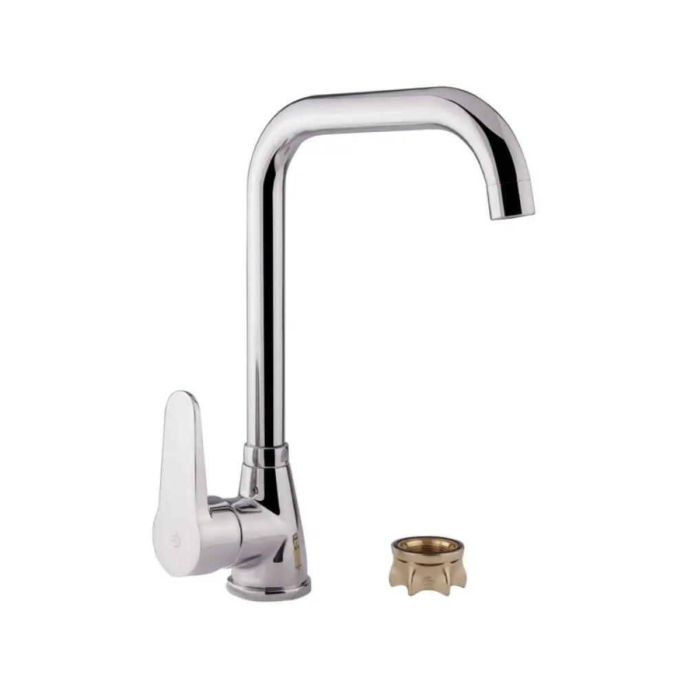 Смеситель для кухни GF (CRM) S-01-007AF изготовлен из силумина. Благодаря хромированном покрытию имеет оригинальный внешний вид. Выполненный в классическом стиле с удобной ручкой для переключения холодной и горячей воды. Такой смеситель не только практический, но и идеально дополнит интерьер кухни.