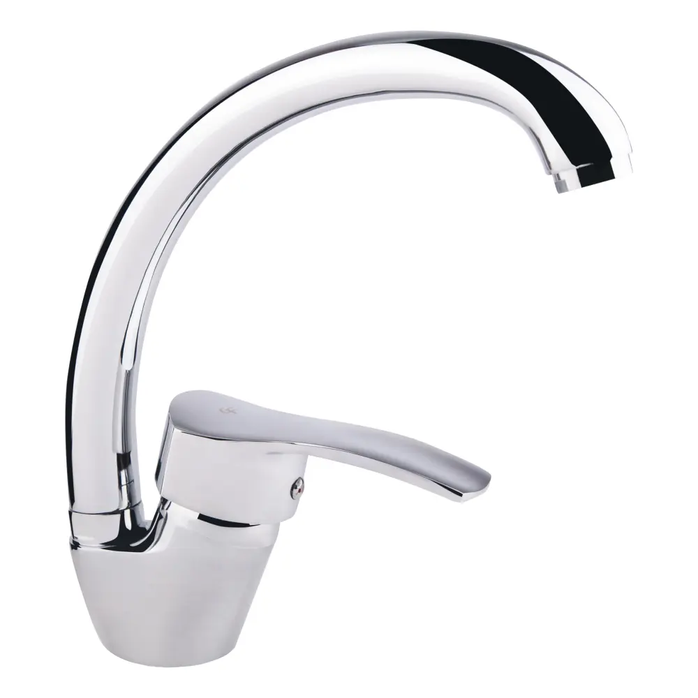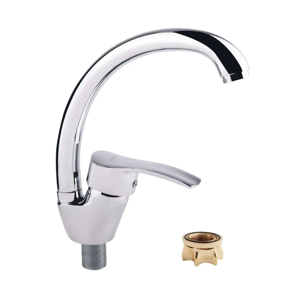 Смеситель для кухни GF (CRM) S-03-008F изготовлен из силумина. Благодаря хромированном покрытию имеет оригинальный внешний вид. Выполненный в классическом стиле с удобной ручкой для переключения холодной и горячей воды. Такой смеситель не только практический, но и идеально дополнит интерьер кухни.