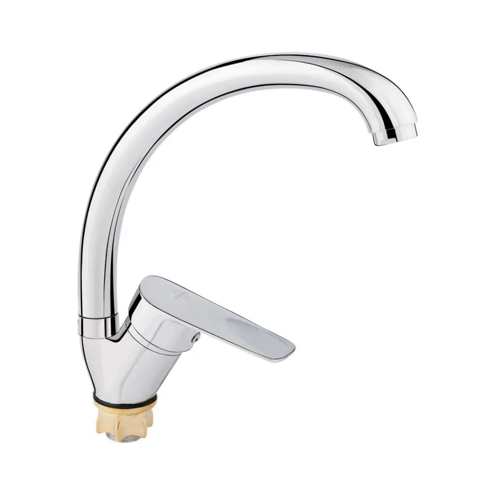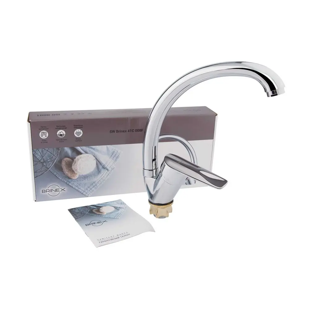 Змішувач для кухонної мийки Brinex 41C 008F виготовлений із металу. Завдяки глянсовому хромованому покриттю має оригінальний зовнішній вигляд. Виконаний в сучасному стилі, зі зручною ручкою для перемикання потоку холодної та гарячої води. Такий змішувач не тільки практичний у використанні, але й ідеально доповнить інтер‘єр кухні.