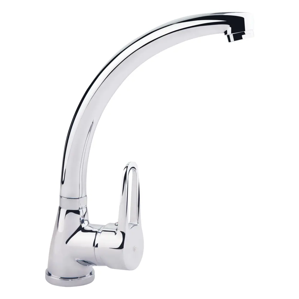 Змішувач для кухні GF (CRM)S-02-007F виготовлений з силуміну. Завдяки хромованому покриттю має оригінальний зовнішній вигляд. Виконаний в класичному стилі зі зручною ручкою для перемикання холодної та гарячої води. Такий змішувач не тільки практичний, але й ідеально доповнить інтер‘єр кухні.