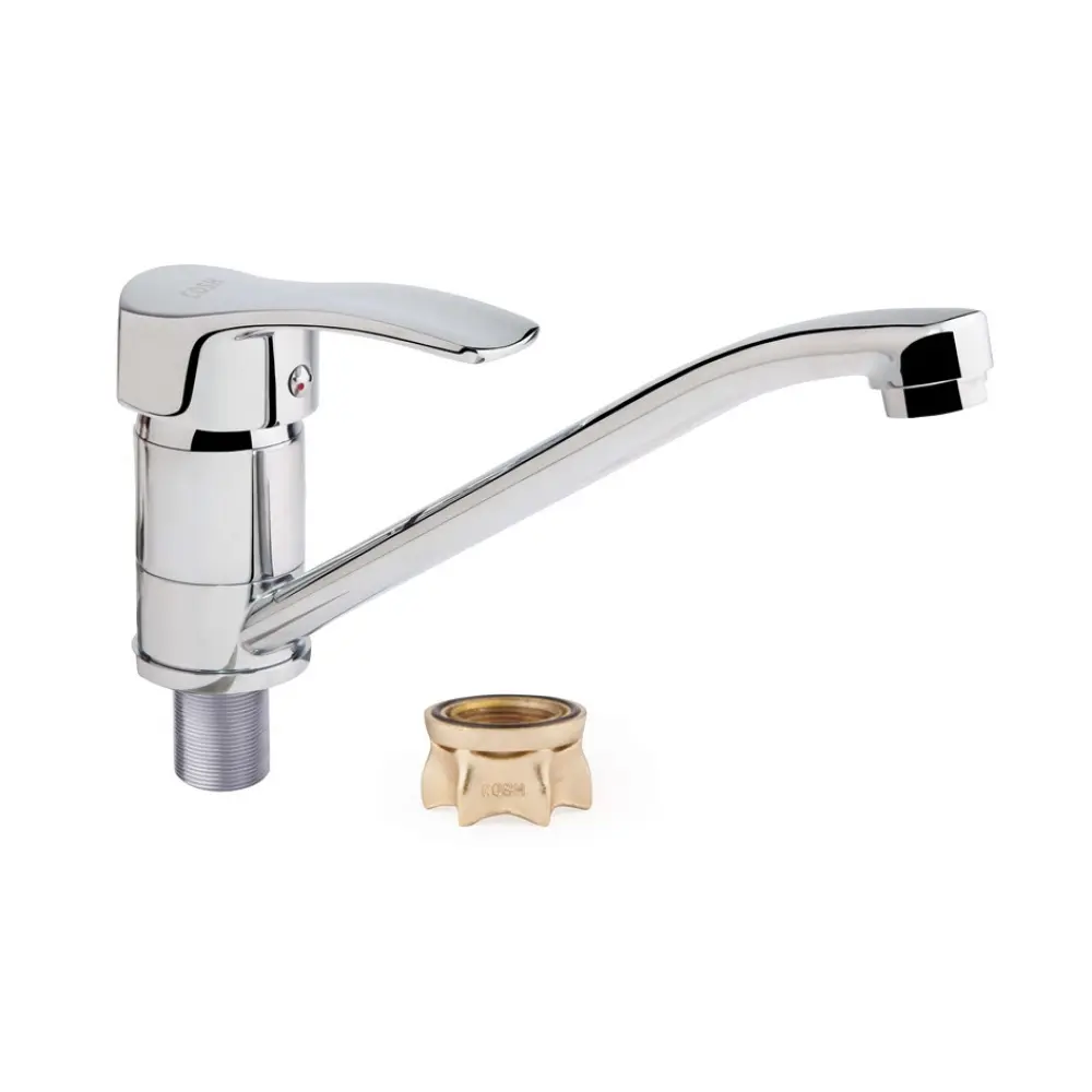 Змішувач для кухні GF (CRM)S-03-003 виготовлений з силуміну. Завдяки хромованому покриттю має оригінальний зовнішній вигляд. Виконаний в класичному стилі зі зручною ручкою для перемикання холодної та гарячої води. Такий змішувач не тільки практичний, але й ідеально доповнить інтер‘єр кухні.